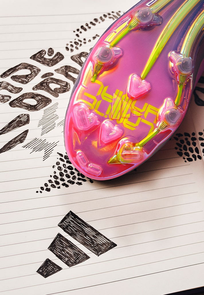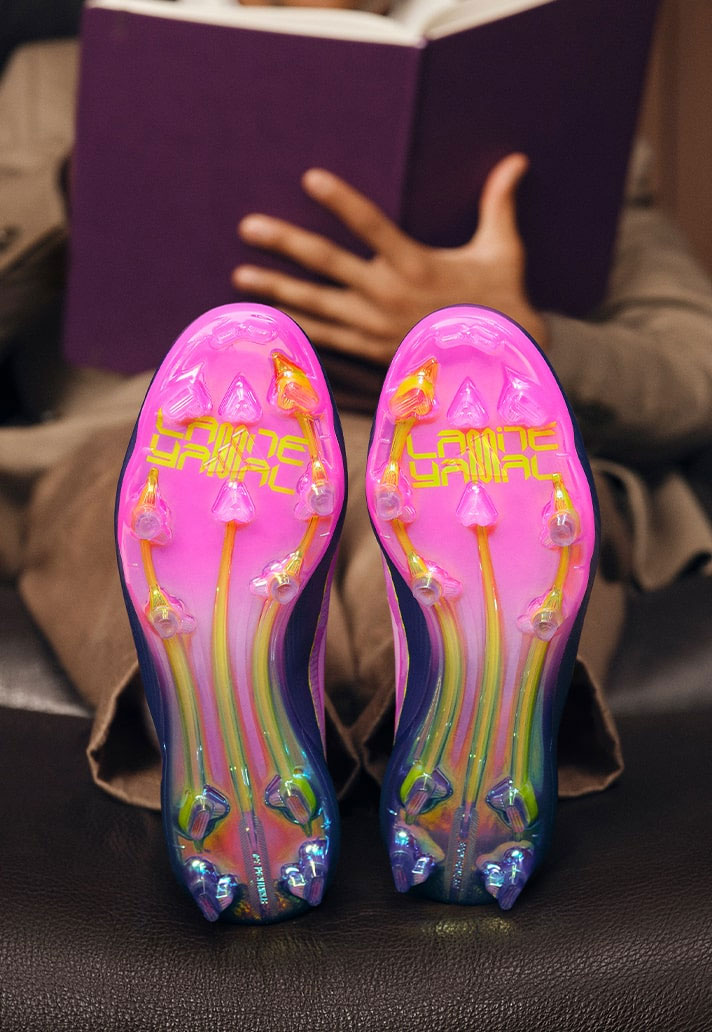 Poprvé se na kopačkách objevuje Yamalovo nové osobní logo, které spojuje několik symbolů: