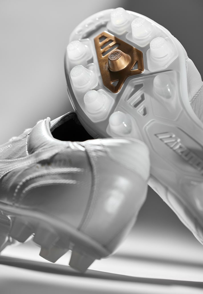 Váha? Pod 200 gramů. Kopačky jsou extrémně lehké, ale zároveň si zachovávají všechny výhody klasické kůže. Mizuno navíc přidalo ultratenké tkaničky a podrážku Septon, která se přizpůsobí jakémukoli povrchu – ať už jde o pevné, měkké nebo umělé hřiště.