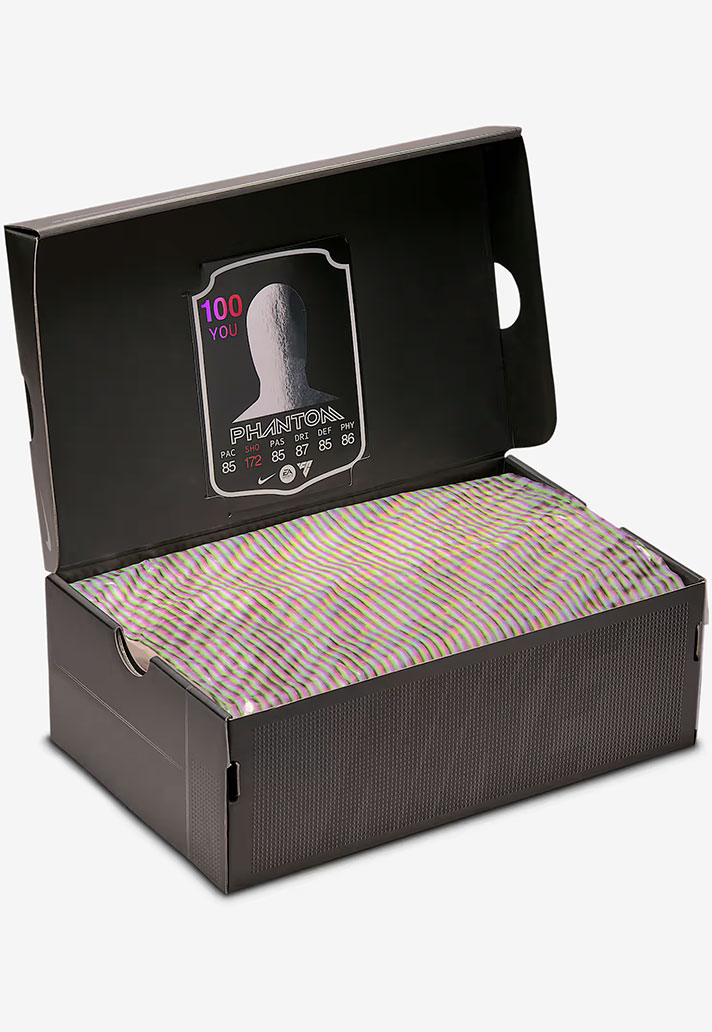 Speciální edice Phantom 6 x EA dostala i unikátní balení. Kopačky přicházejí v retro krabici inspirované starými televizory, s potištěným papírem připomínajícím statický šum mezi kanály.